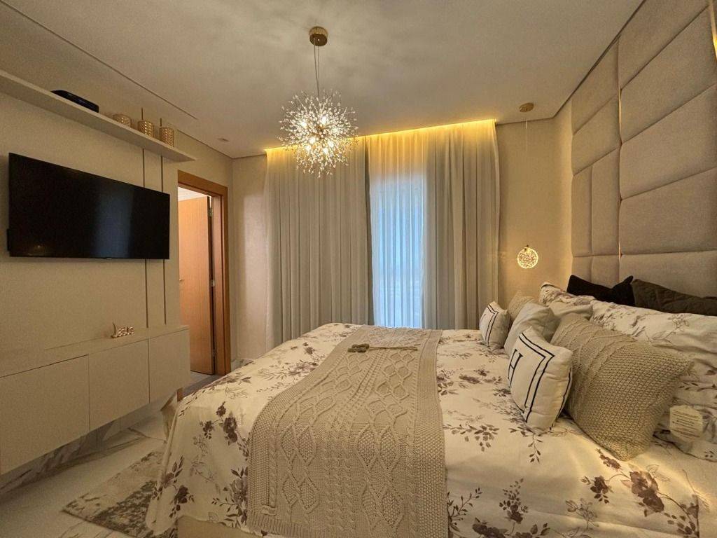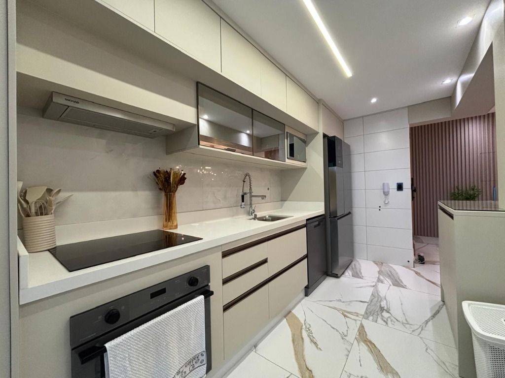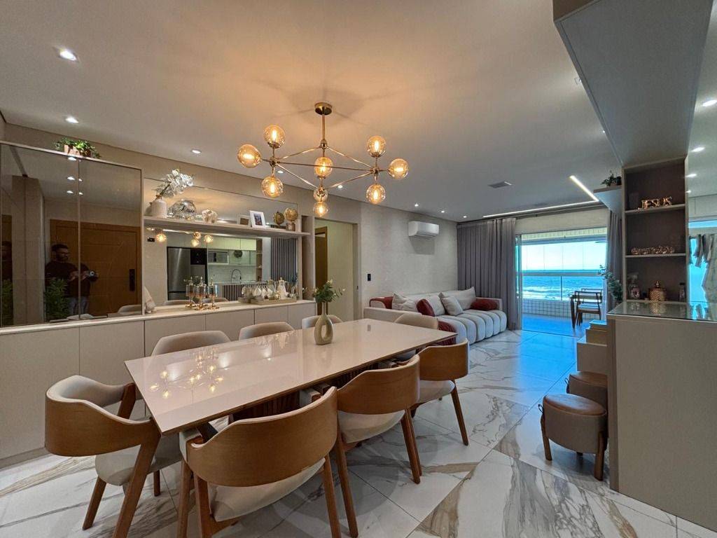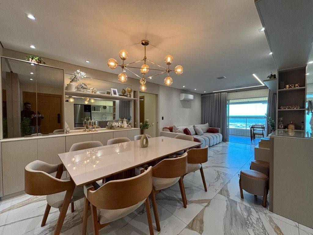 Em andar alto, a poucos metros da orla, com vista panorâmica do mar, sala ampla para dois ambientes, com piso em porcelanato, decoração sofisticada com armários planejados, persianas, lustres e acabamentos de alto padrão. A varanda gourmet envidraçada amplia o espaço e valoriza a vista mar, ideal para confraternizações e momentos relaxantes.