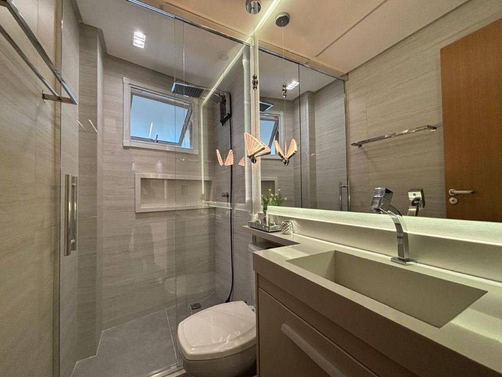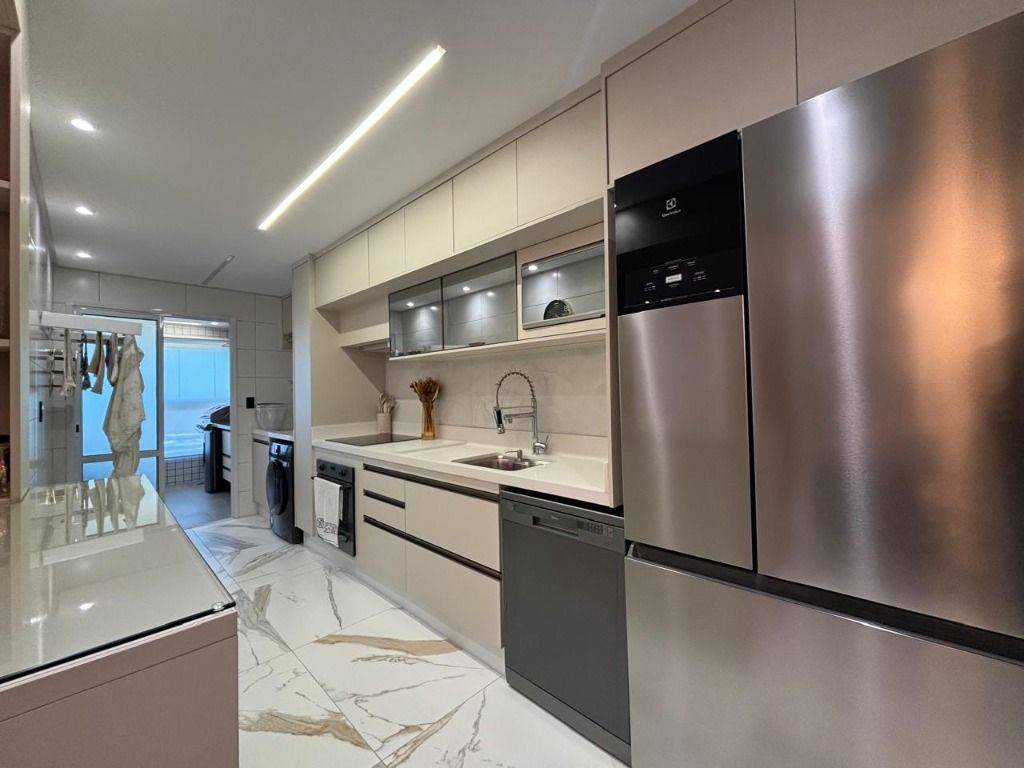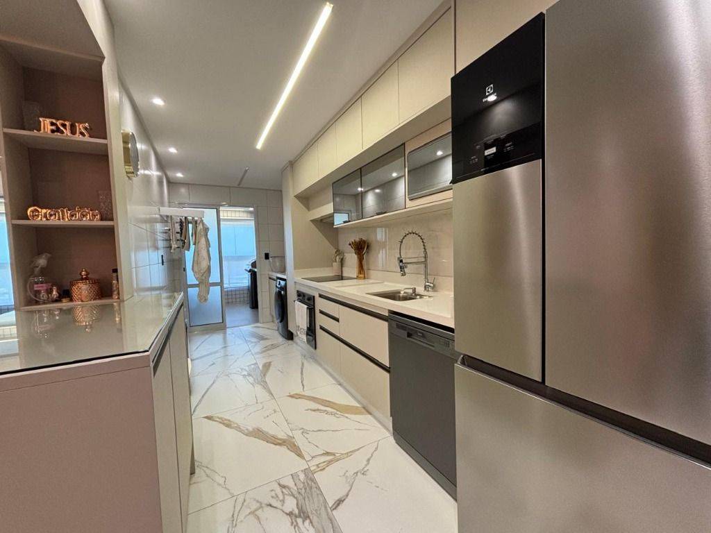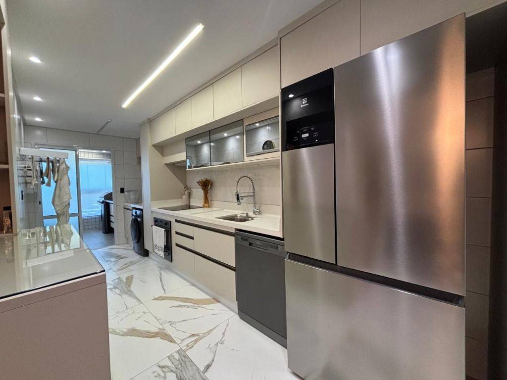 Em andar alto, a poucos metros da orla, com vista panorâmica do mar, sala ampla para dois ambientes, com piso em porcelanato, decoração sofisticada com armários planejados, persianas, lustres e acabamentos de alto padrão. A varanda gourmet envidraçada amplia o espaço e valoriza a vista mar, ideal para confraternizações e momentos relaxantes.
